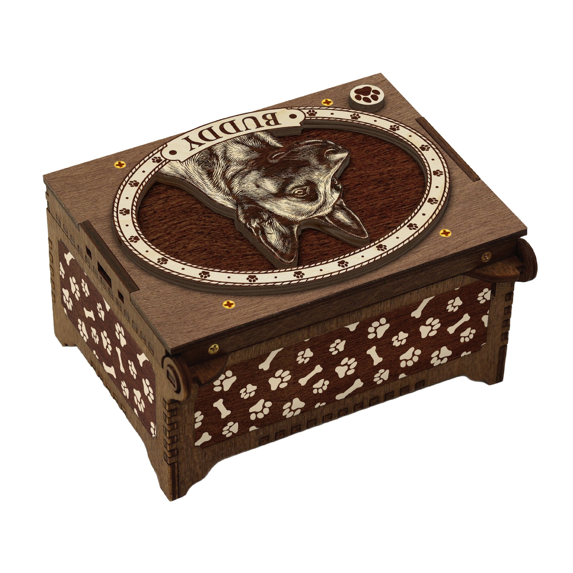 Honor your dog with this handcrafted Belgian Malinois music box. Designed as a timeless tribute to the loyal dog in your life, this box serves as a sacred space for your most cherished memories. Whether you are looking for a sympathy gift for a grieving friend or a personal way to remember your own companion, this box offers comfort and connection.
