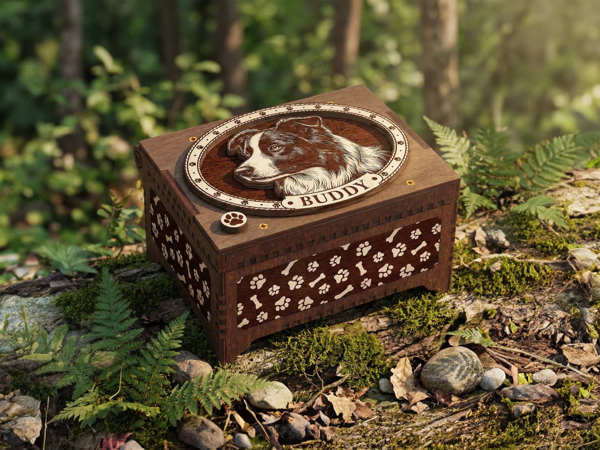 Honor your dog with this handcrafted Border Collie dog music box. Designed as a timeless tribute to the loyal dog in your life, this box serves as a sacred space for your most cherished memories. Whether you are looking for a sympathy gift for a grieving friend or a personal way to remember your own companion, this box offers comfort and connection.
