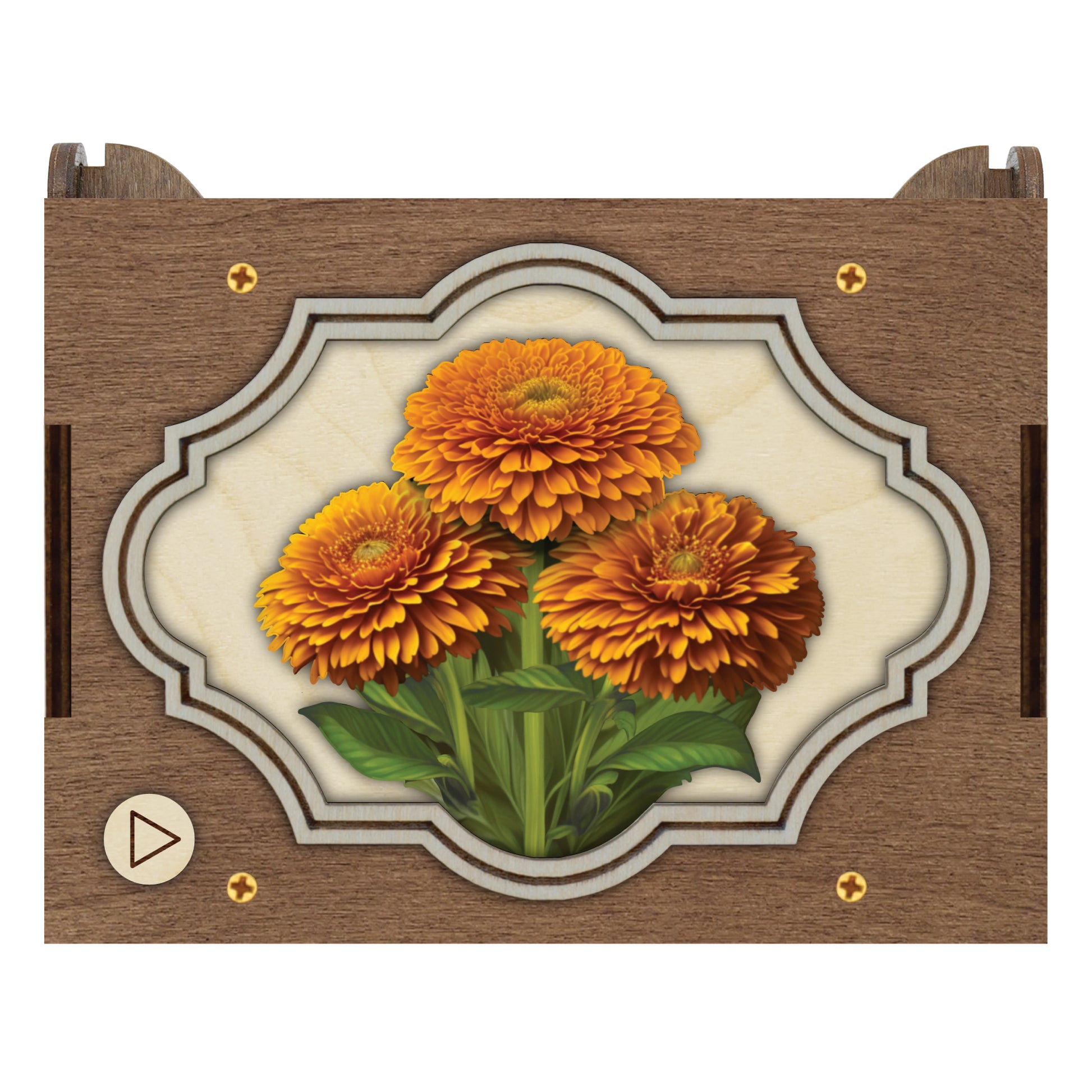 Bring your melody to life with this unique and thoughtful colorful marigold flower music box that combines music and memories in one delightful package. This flower themed music box can be recorded with any audio.