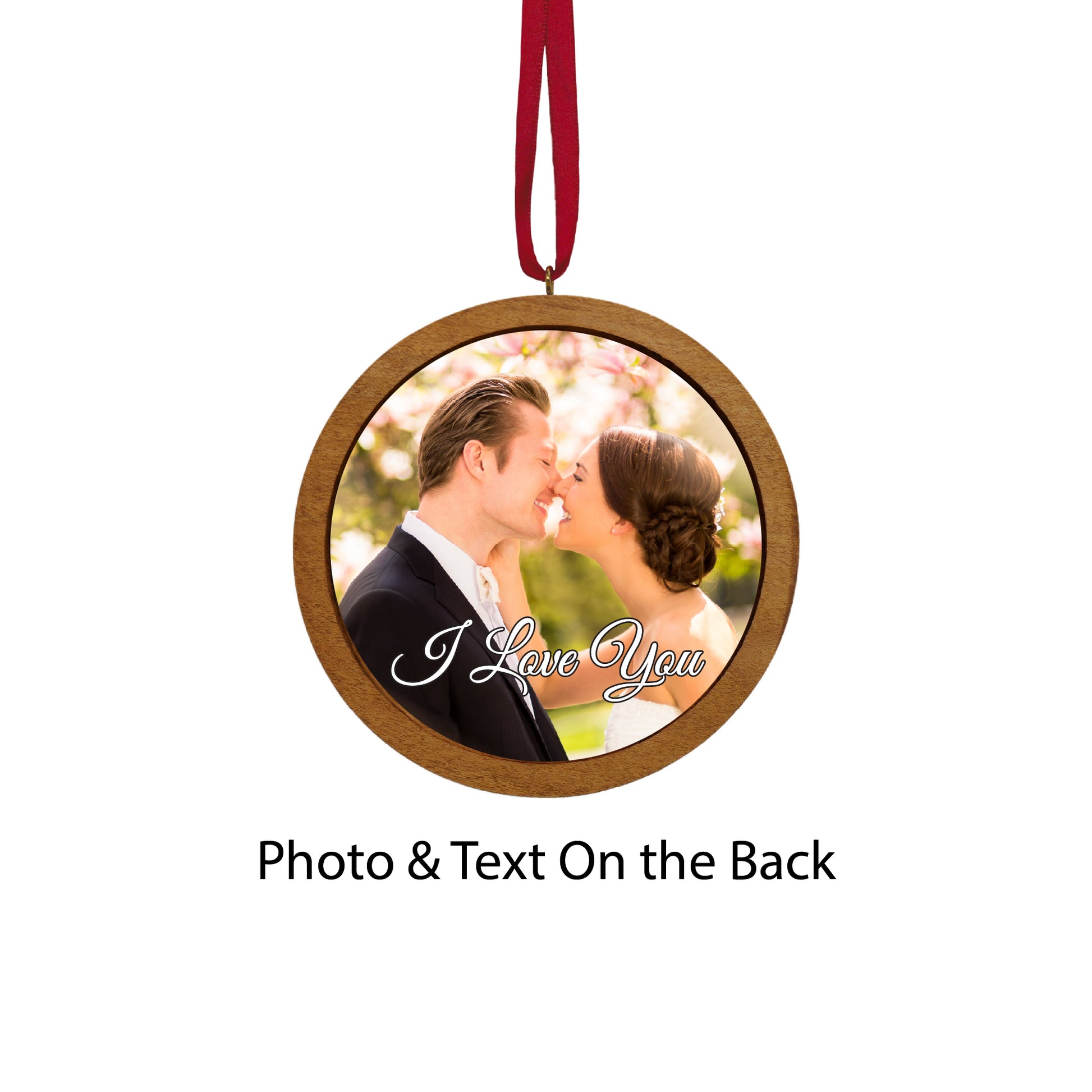You can customize this unique ornament with your photo and text on the back.