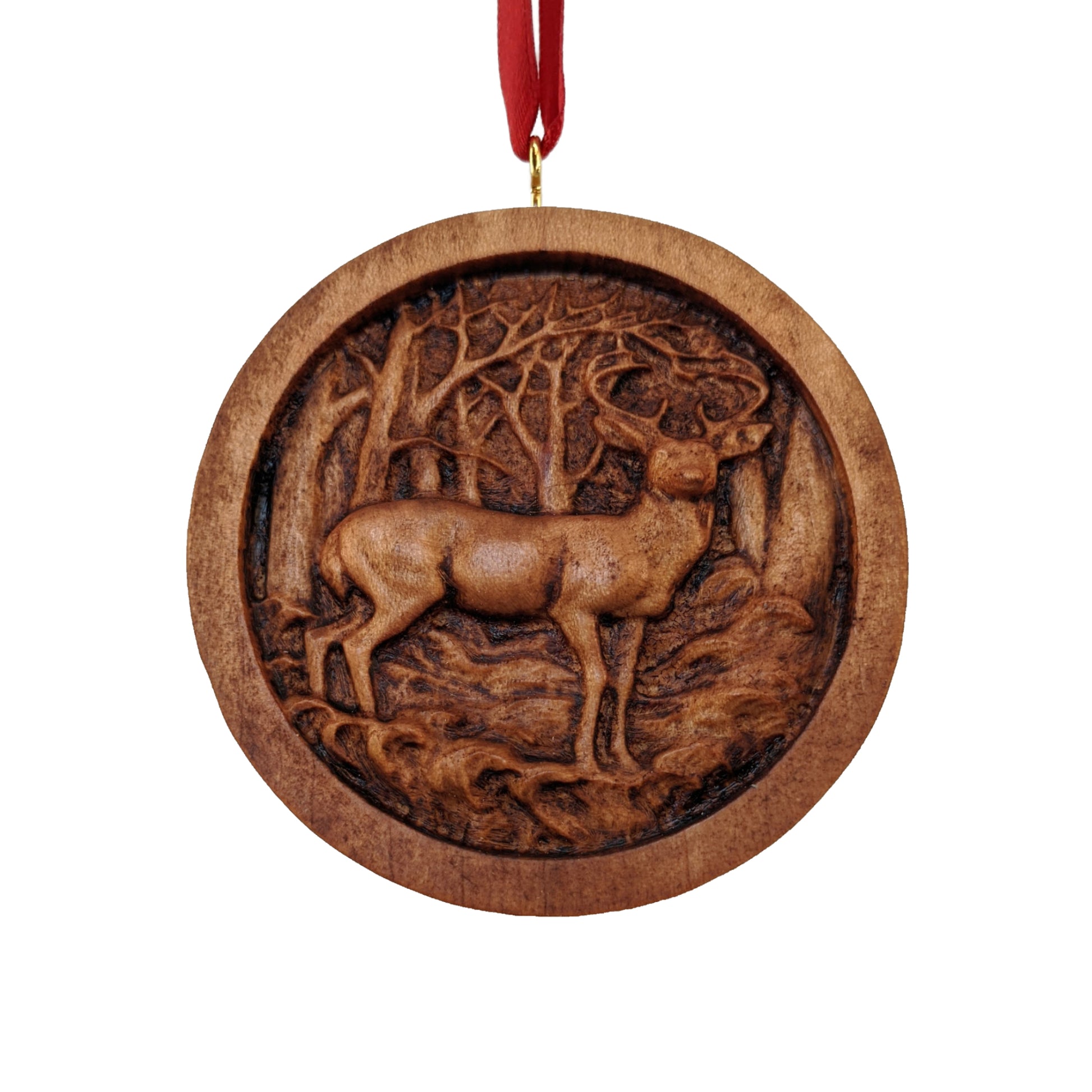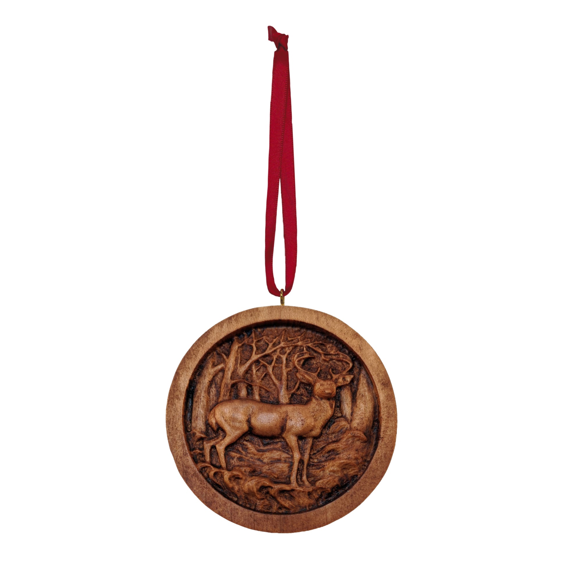 A beautiful and high quality Christmas tree ornament! Carved from solid maple hardwood and comes on a red ribbon for hanging.