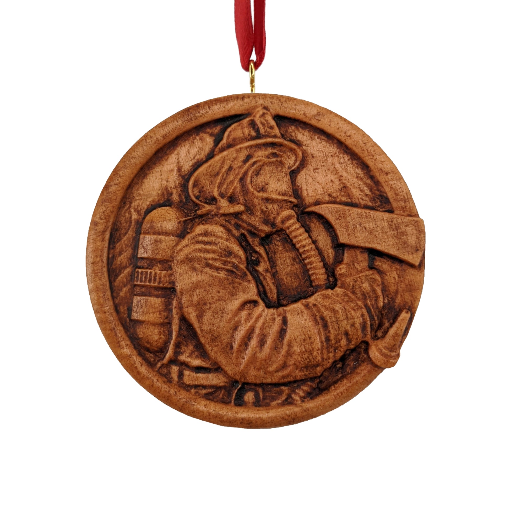 A beautiful and high quality Christmas tree ornament! Carved from solid maple hardwood and comes on a red ribbon for hanging.