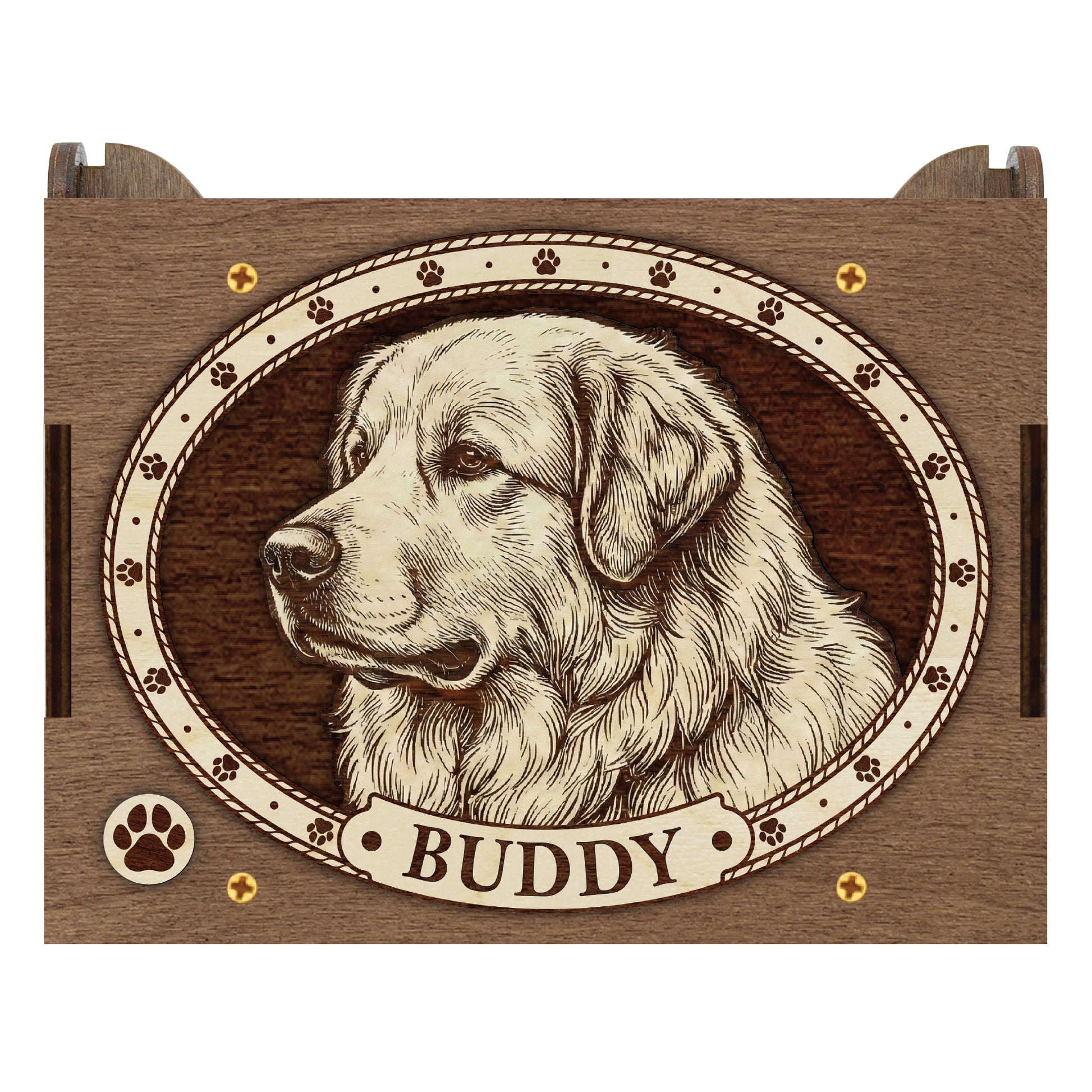 While perfect as a bereavement or rainbow bridge gift, this custom pet box can also be used for many purposes. Use it as a dog training box that plays sound and holds treats for positive reinforcement with a new puppy, a jewelry box, or just to celebrate your special dog.