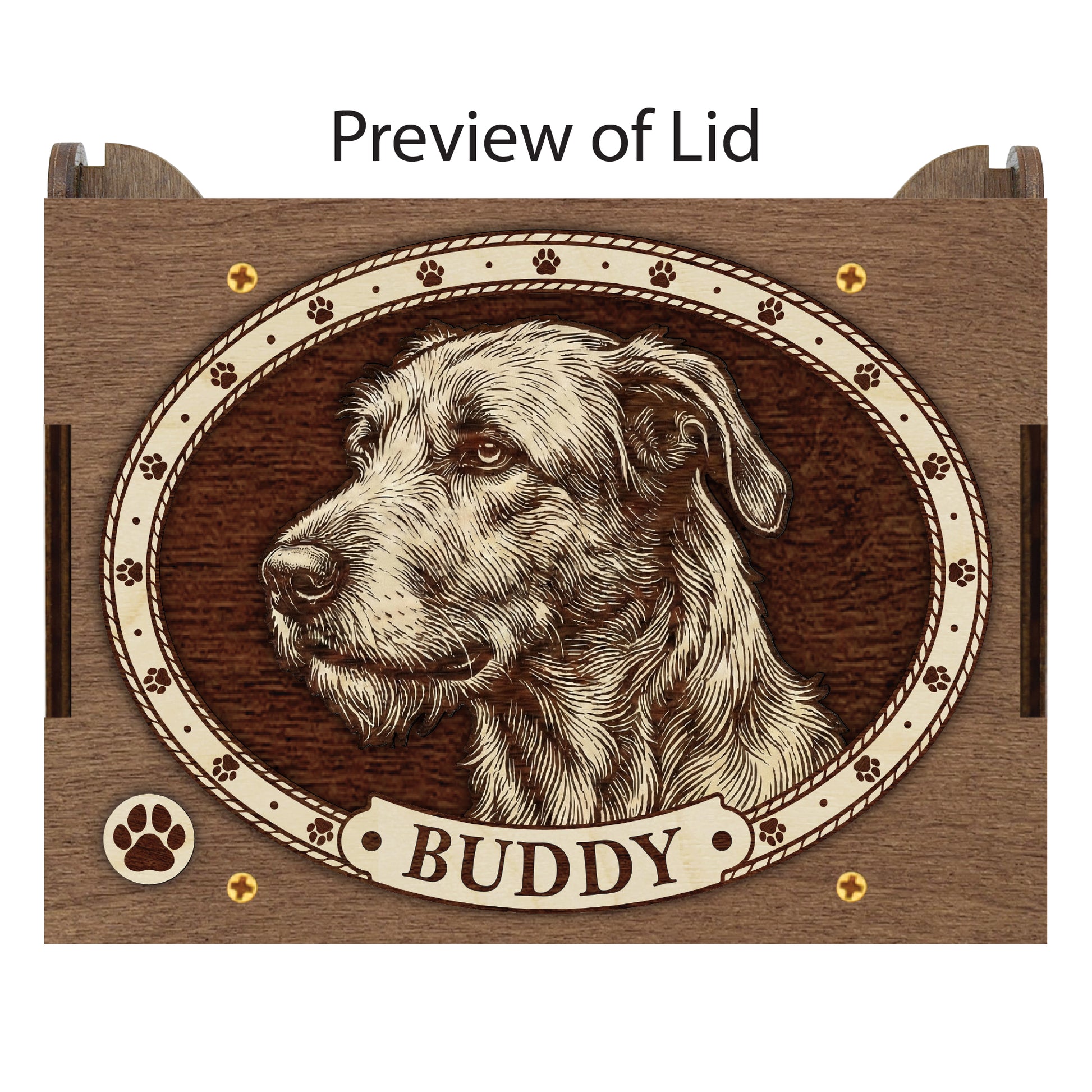Honor your dog with this handcrafted Irish Wolfhound dog music box. Designed as a timeless tribute to the loyal dog in your life, this box serves as a sacred space for your most cherished memories. Whether you are looking for a sympathy gift for a grieving friend or a personal way to remember your own companion, this box offers comfort and connection.
