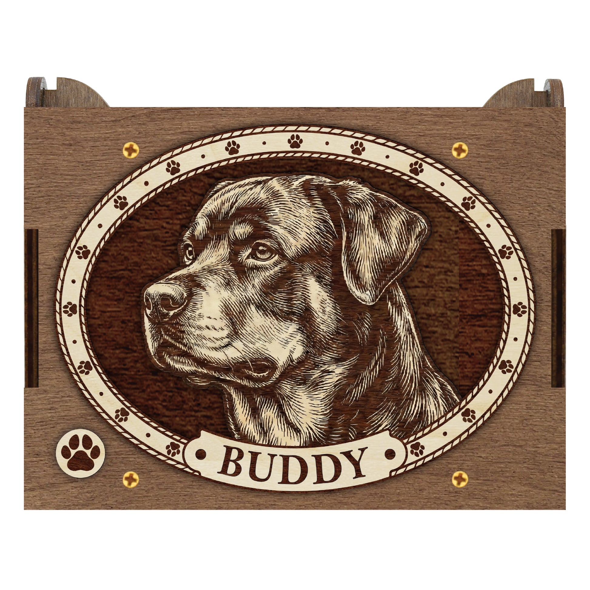 Honor your dog with this handcrafted Rottweiler dog music box. Designed as a timeless tribute to the loyal dog in your life, this box serves as a sacred space for your most cherished memories. Whether you are looking for a sympathy gift for a grieving friend or a personal way to remember your own companion, this box offers comfort and connection.