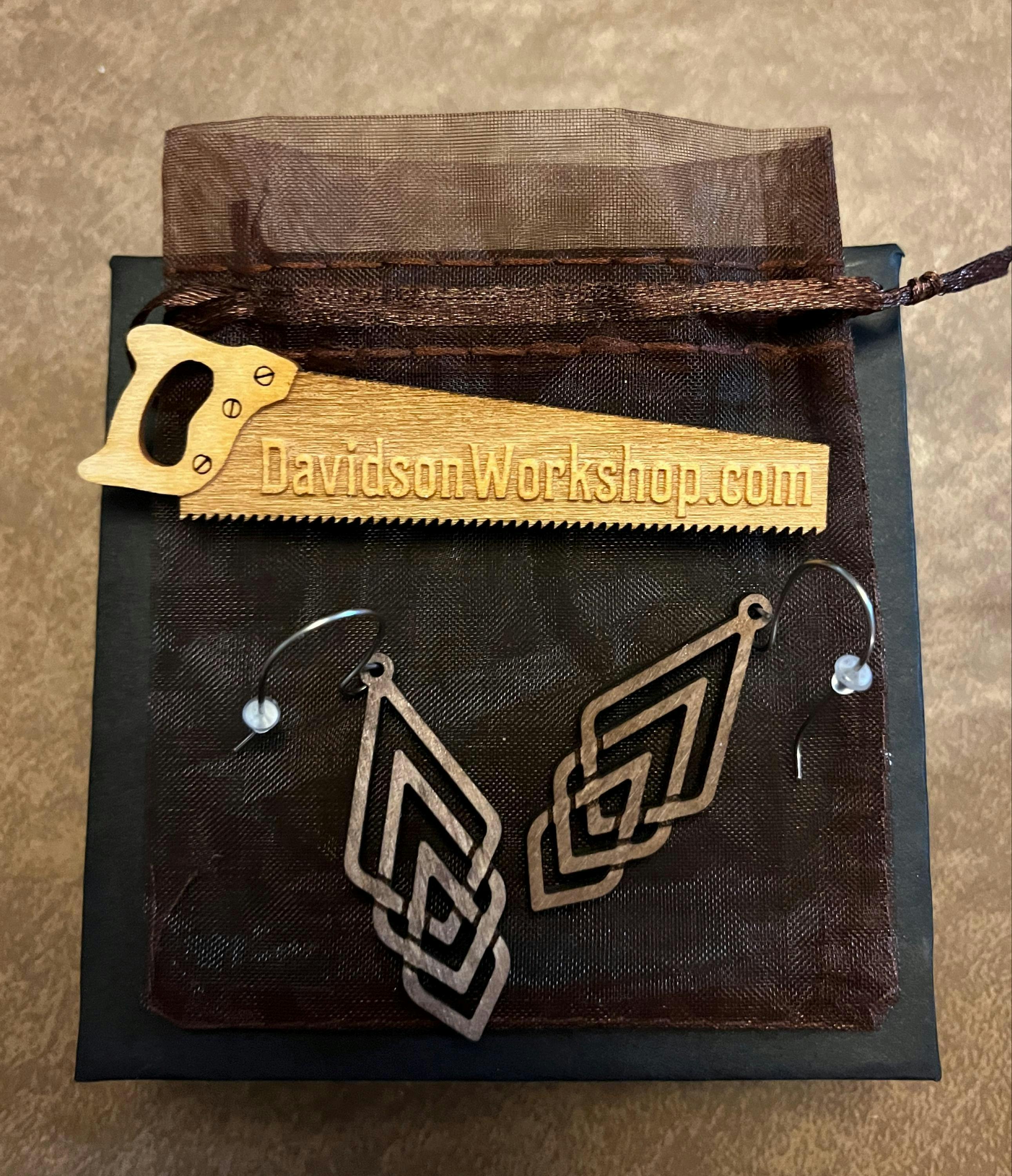 Triple Diamond Wood Earrings
