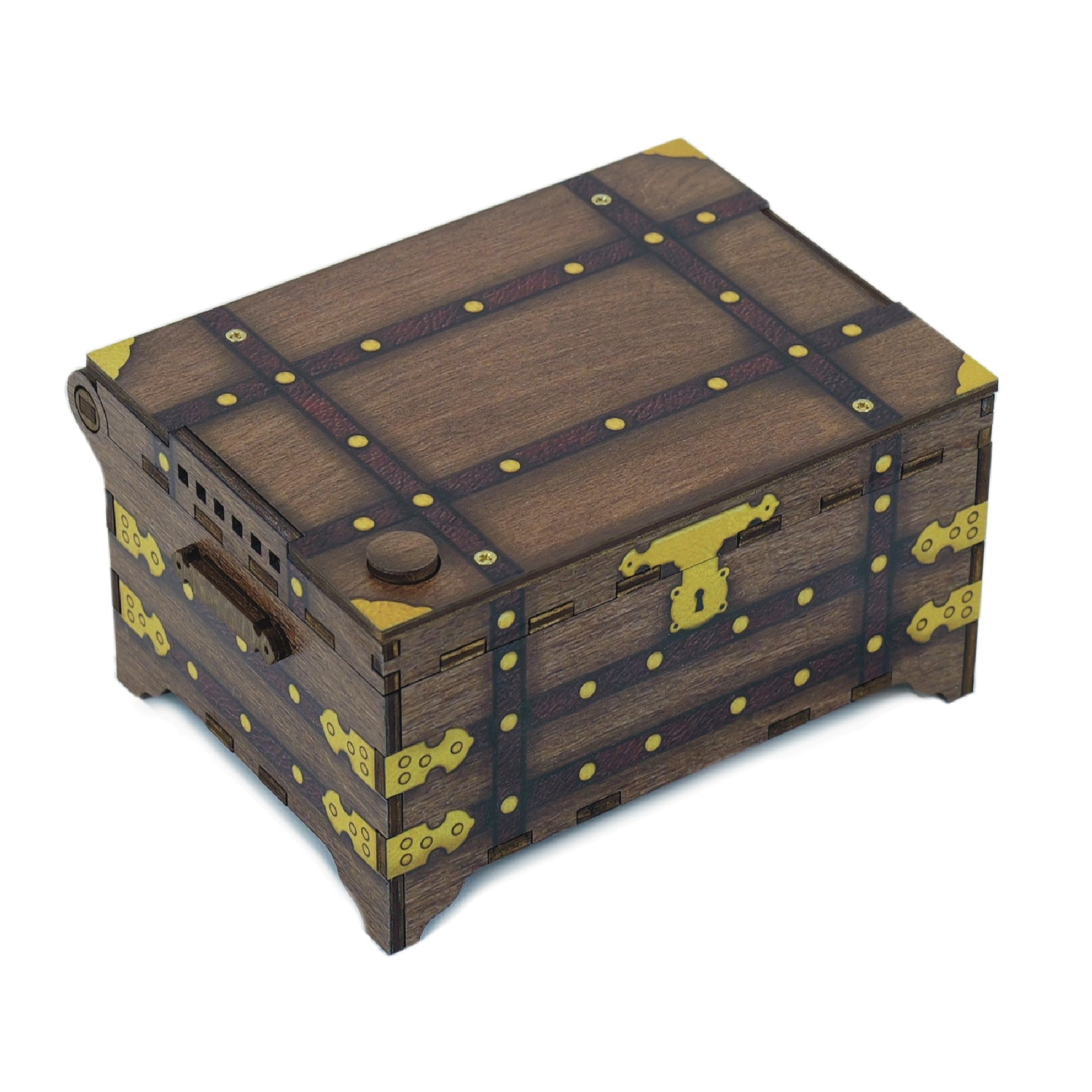 This miniature trunk digital audio music box will play your favorite song. Because it is recorded digitally, literally any audio (including voice) can be used. If you prefer a traditional music box sound, there are many to choose from online. Pressing the play button on the lid of the box starts and stops the song.