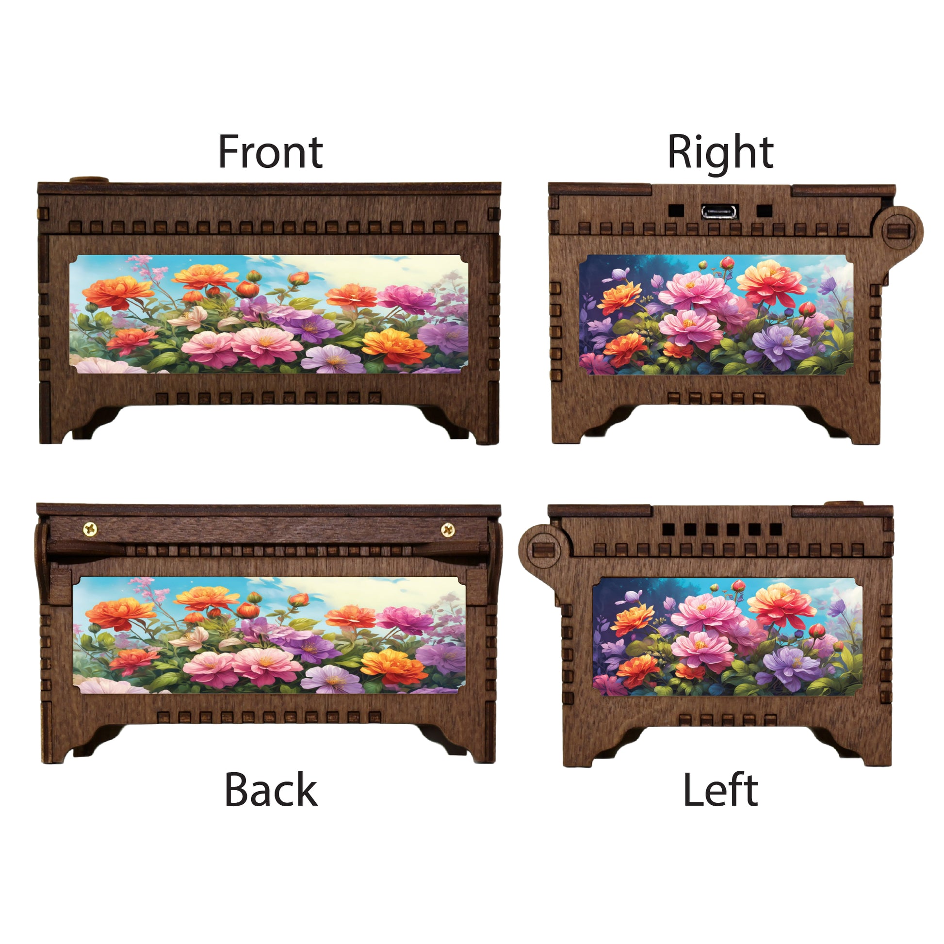 The music box uses a rechargeable battery. Use a standard USB-C cord to charge (included).