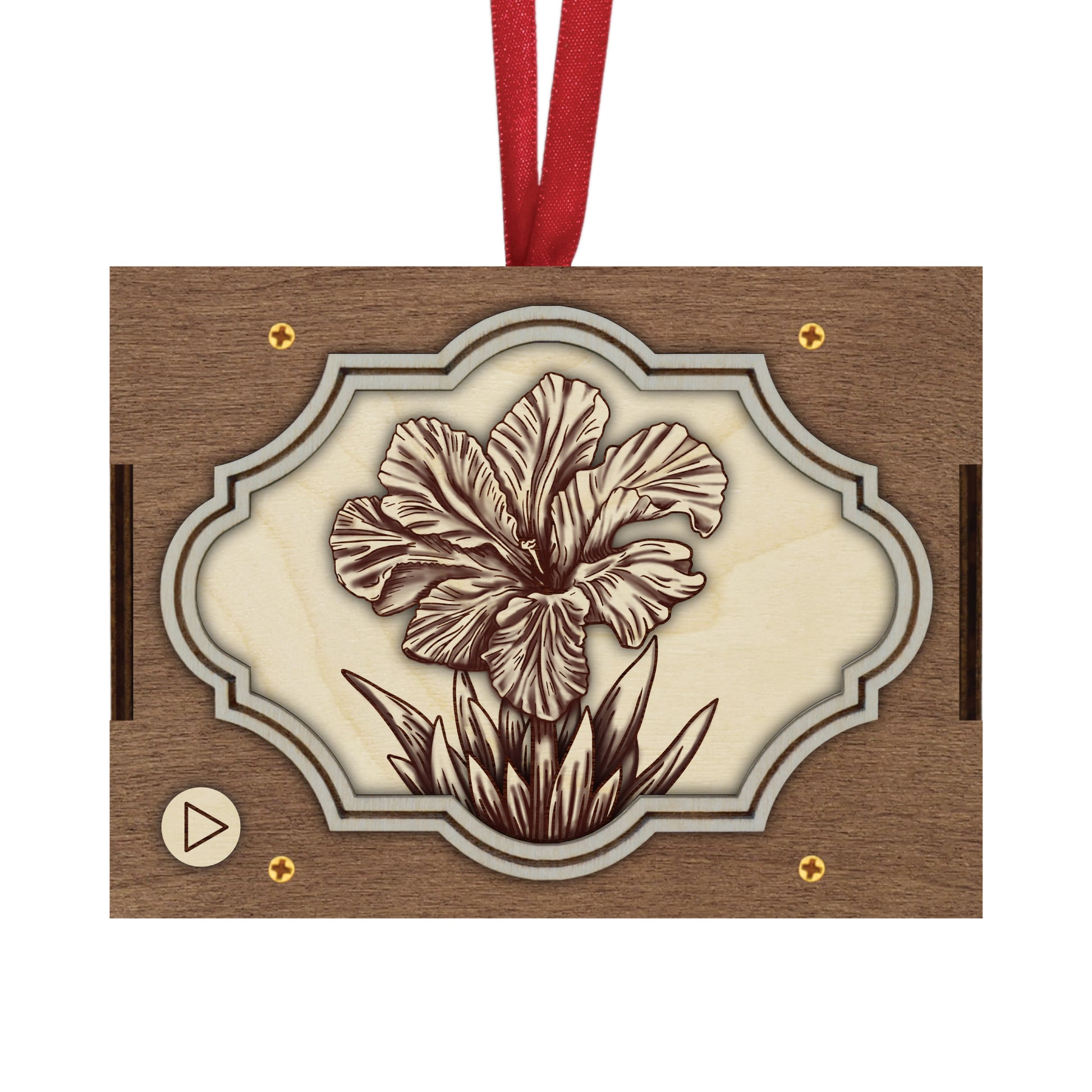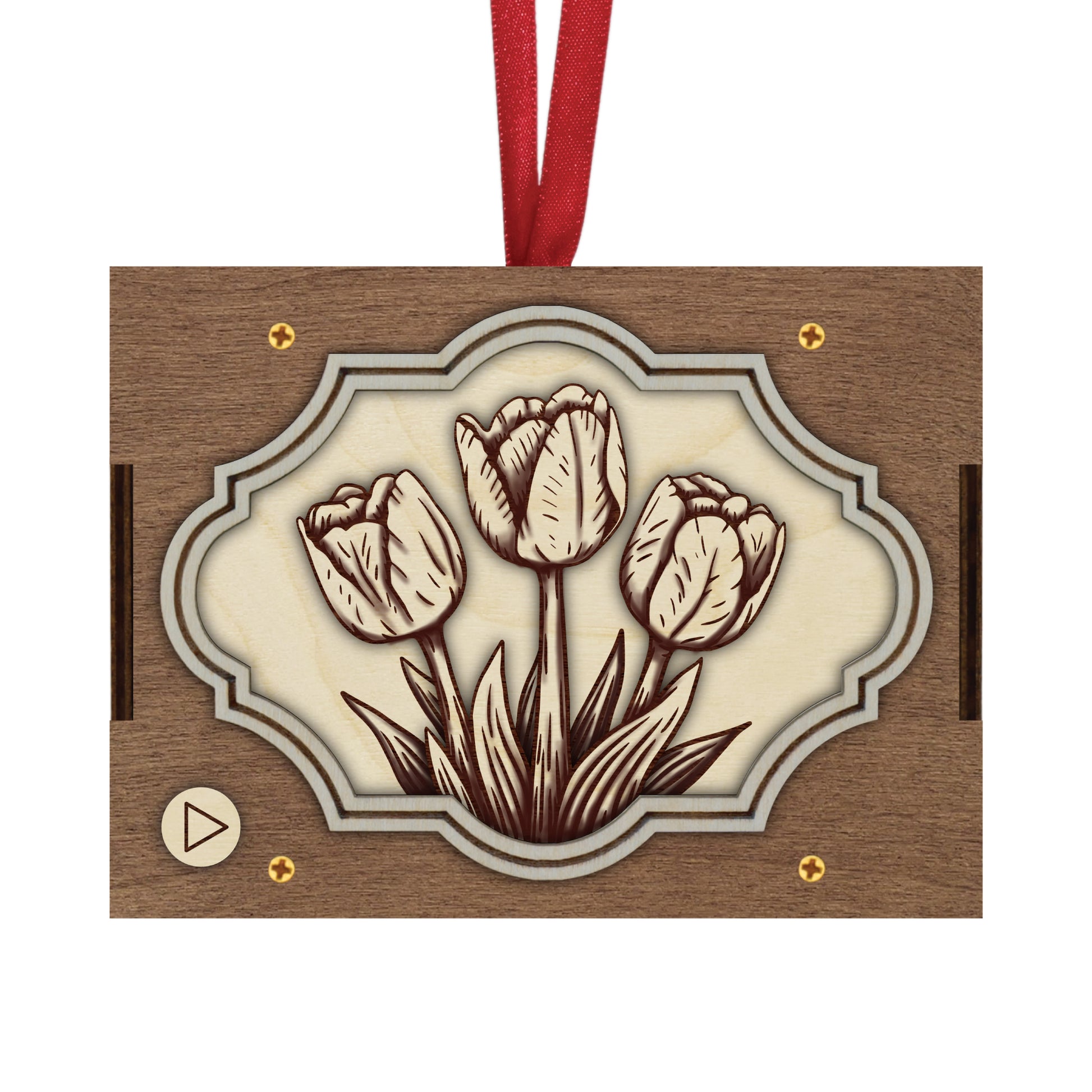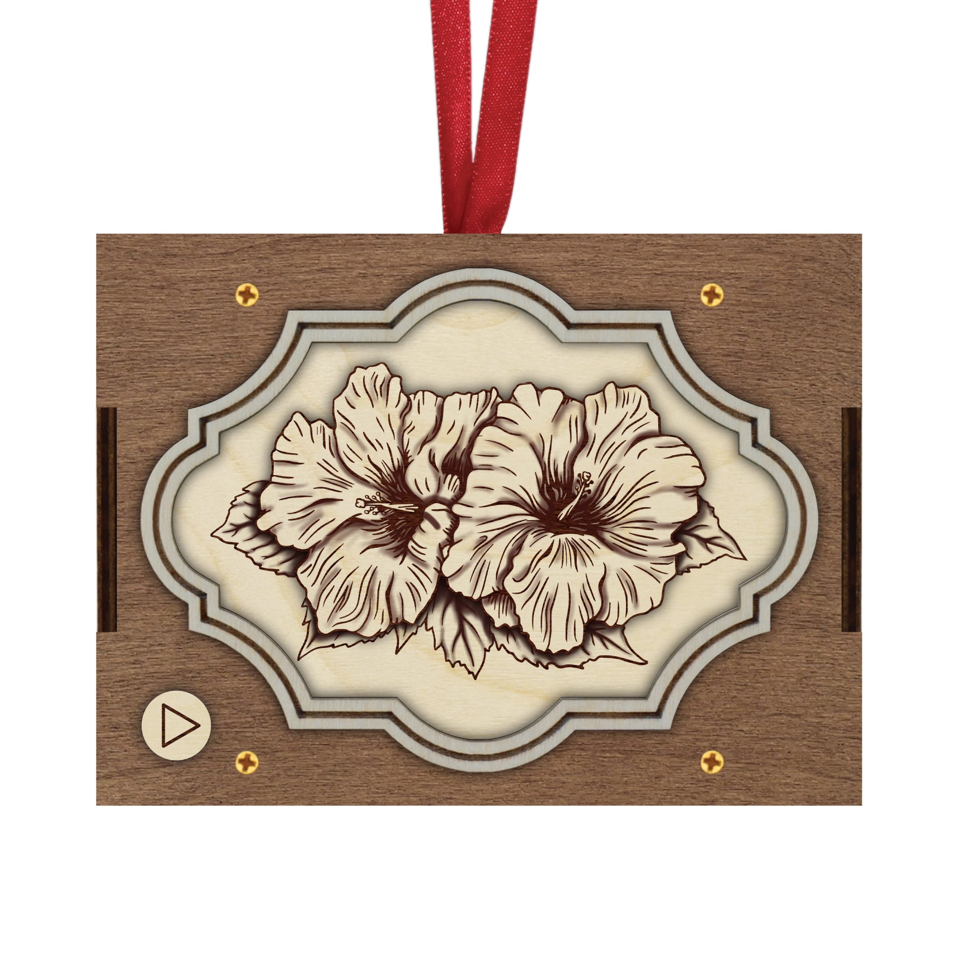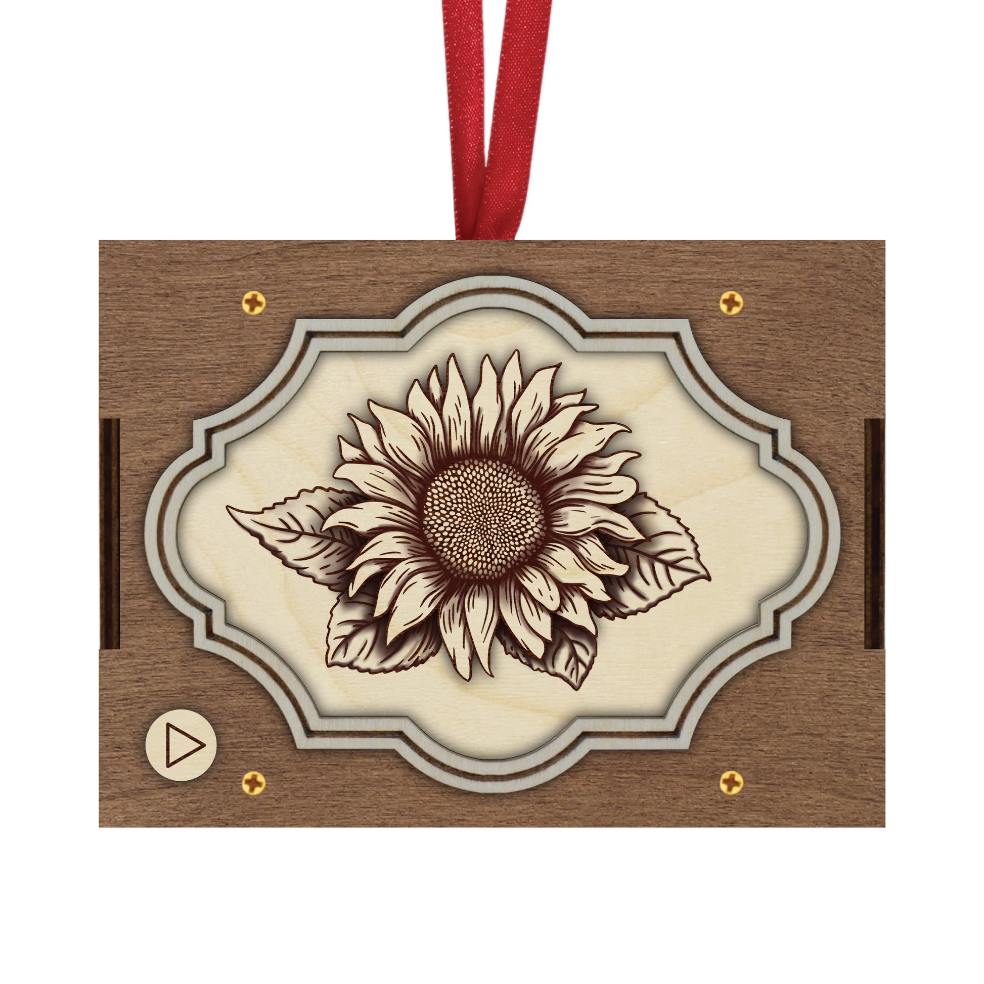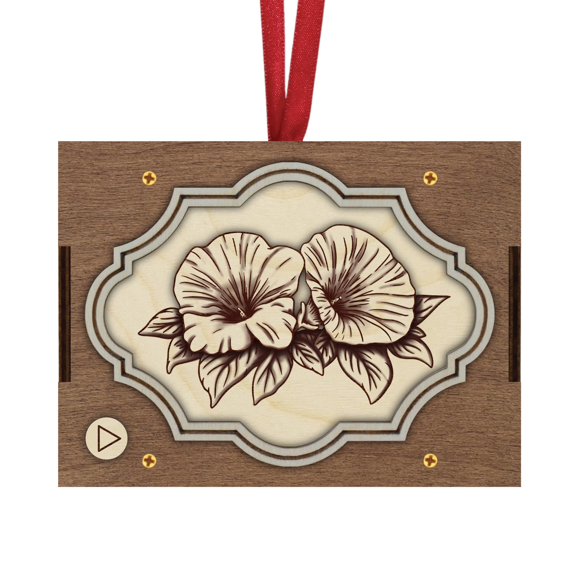 Bring your melody to life with this unique and thoughtful ornament that combines music and memories in one delightful package. This flower themed ornament can be personalized with your choice of 21 flowers, a photo and/or text print on the back, and any song!