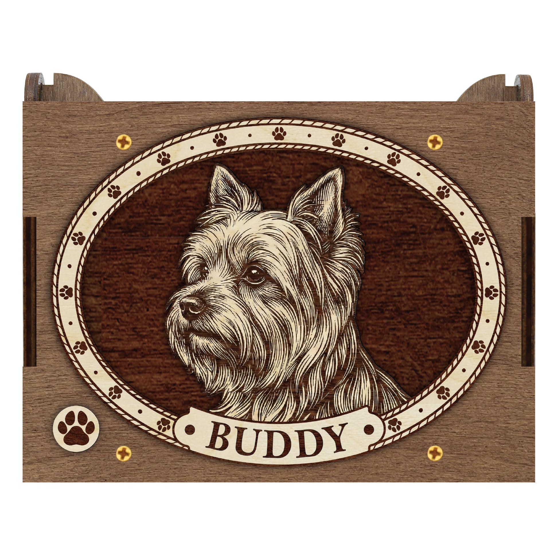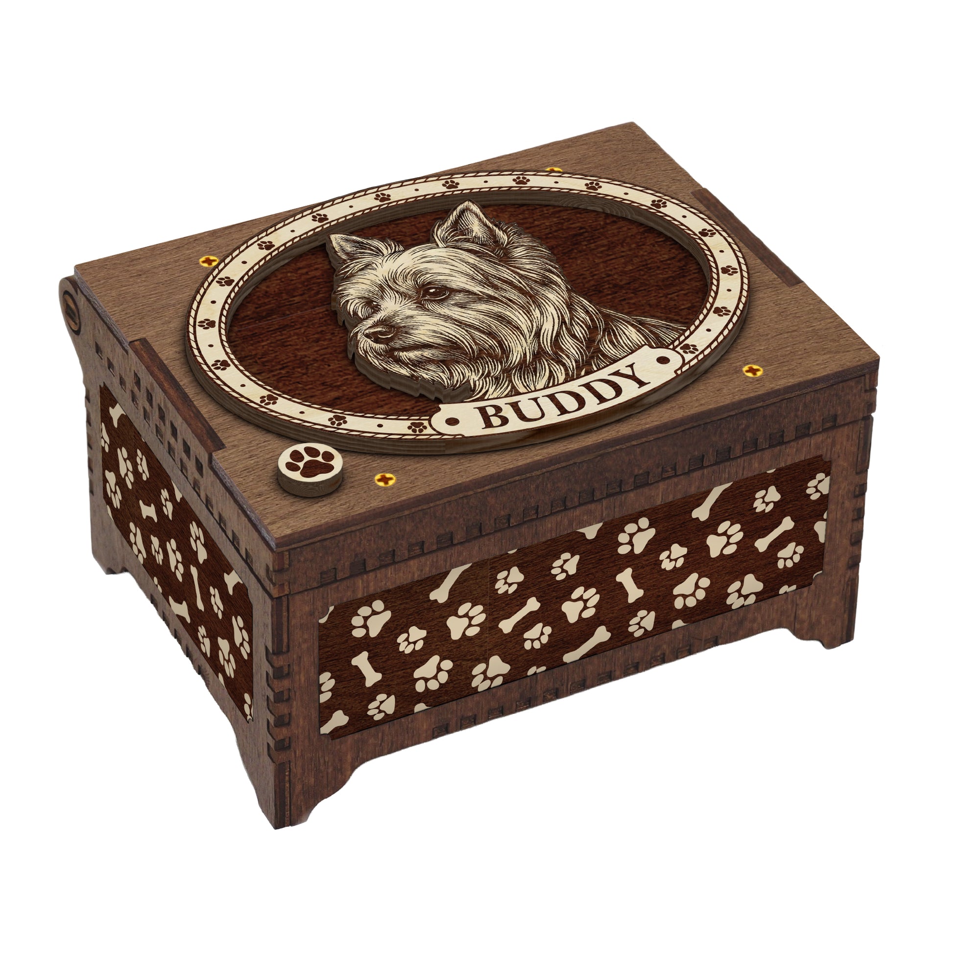 Honor your dog with this handcrafted Yorkshire Terrier music box. Designed as a timeless tribute to the loyal dog in your life, this box serves as a sacred space for your most cherished memories. Whether you are looking for a sympathy gift for a grieving friend or a personal way to remember your own companion, this box offers comfort and connection.